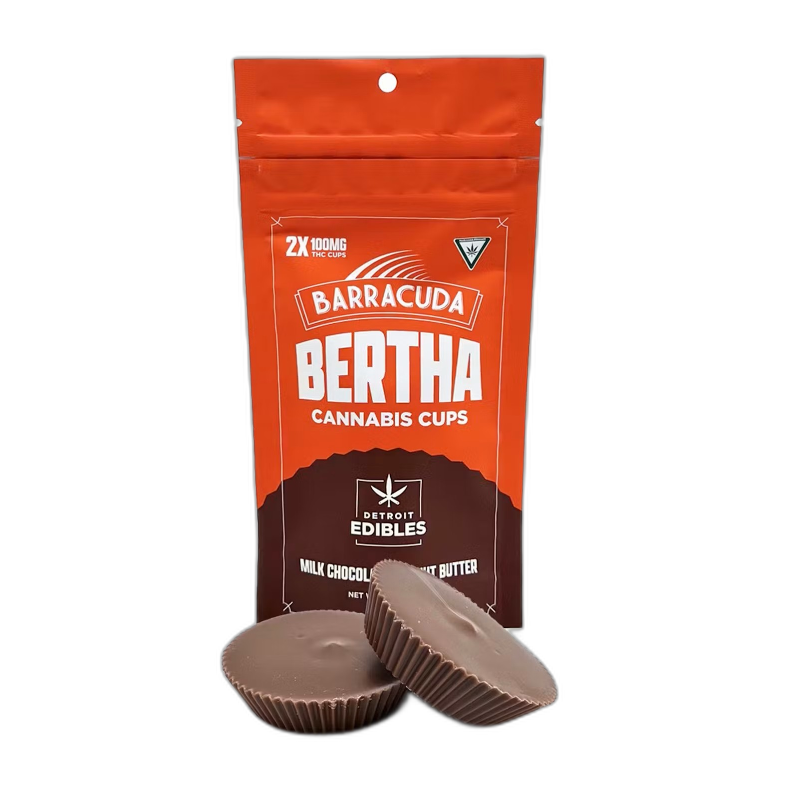 There's big, bigger and, then, Bertha. These delicious Belgian chocolate cups are filled with peanut butter and infused with a potent 100mg THC per cu...[Read More]There's big, bigger and, then, Bertha. These delicious Belgian chocolate cups are filled with peanut butter and infused with a potent 100mg THC per cup. Two Bertha cups per pack and fully activates in 1-2 hours. [Less]
