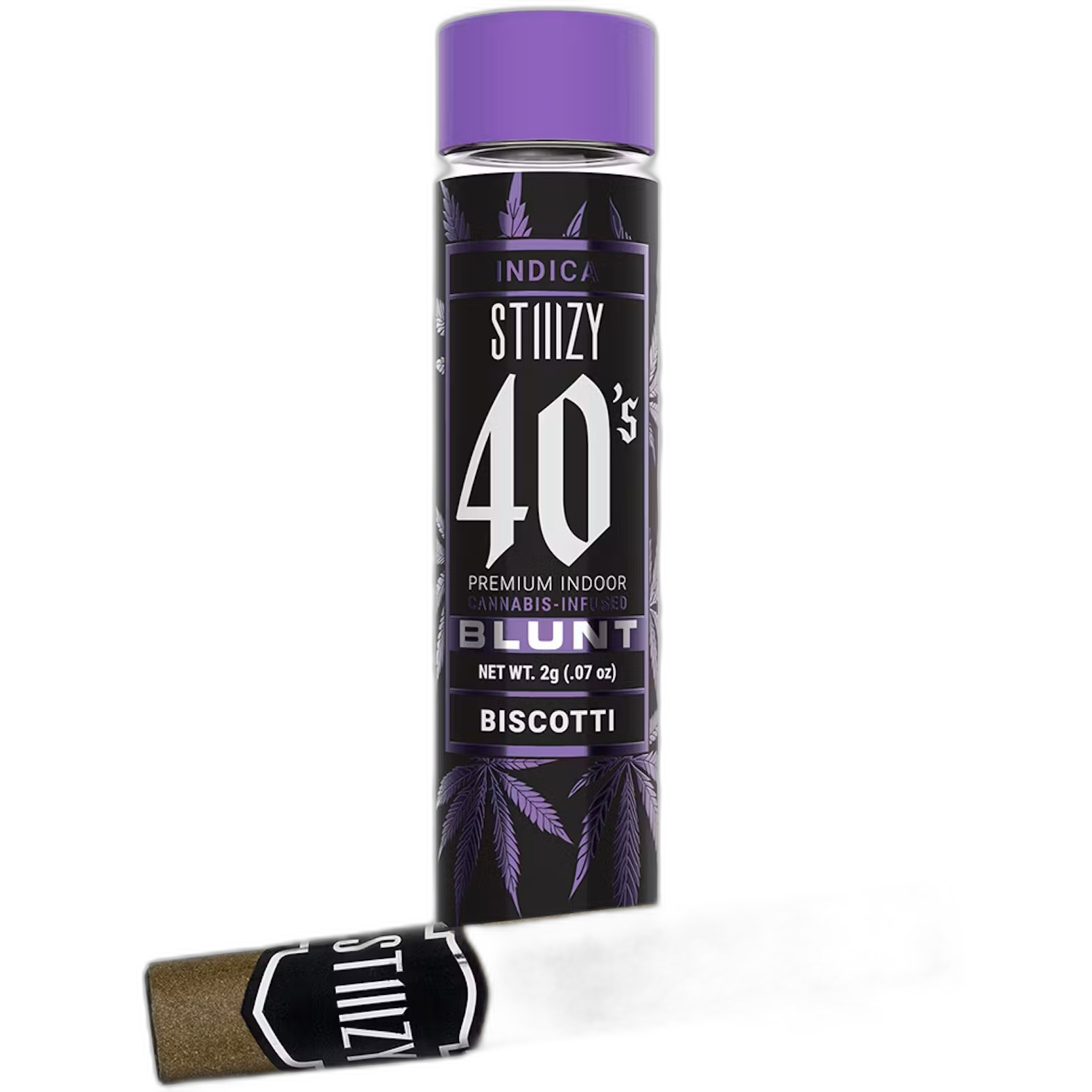STIIIZY 40's blunts are rolled with 100% tobacco free, kief dusted hemp wraps, secured tightly around a glass tip. The...[Read More]remium 40's 2G Indoor Blunts