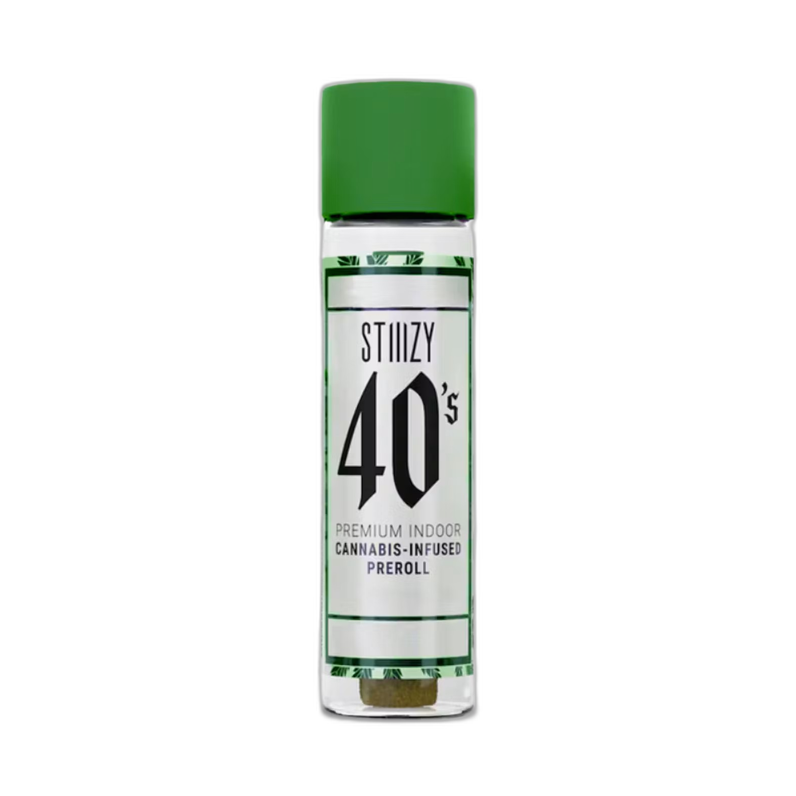 Elevate your pre-roll game. STIIIZY 40's pre-rolls are setting the standard with high potency, cannabis infused joints coated evenly with kief. Using...[Read More] Elevate your pre-roll game. STIIIZY 40's pre-rolls are setting the standard with high potency, cannabis infused joints coated evenly with kief. Using their proprietary live resin infusion methods, they've designed every pre-roll to offer 40%+ THC potency with a unique flavor profile. With a smooth inhale and tasteful exhale, each and every STIIIZY 40's is packed with indoor grown flower, specifically made to ensure a potent and long-lasting high. Spark up the 40's. [Less]
