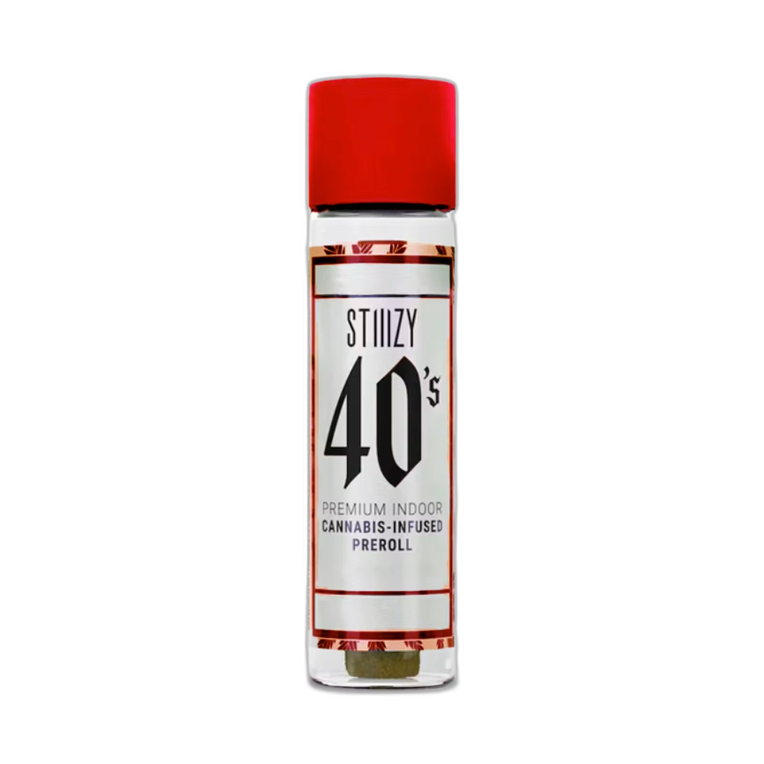 Elevate your pre-roll game. STIIIZY 40's pre-rolls are setting the standard with high potency, cannabis infused joints coated evenly with kief. Using...[Read More]Elevate your pre-roll game. STIIIZY 40's pre-rolls are setting the standard with high potency, cannabis infused joints coated evenly with kief. Using their proprietary live resin infusion methods, they've designed every pre-roll to offer 40%+ THC potency with a unique flavor profile. With a smooth inhale and tasteful exhale, each and every STIIIZY 40's is packed with indoor grown flower, specifically made to ensure a potent and long-lasting high. Spark up the 40's. [Less]