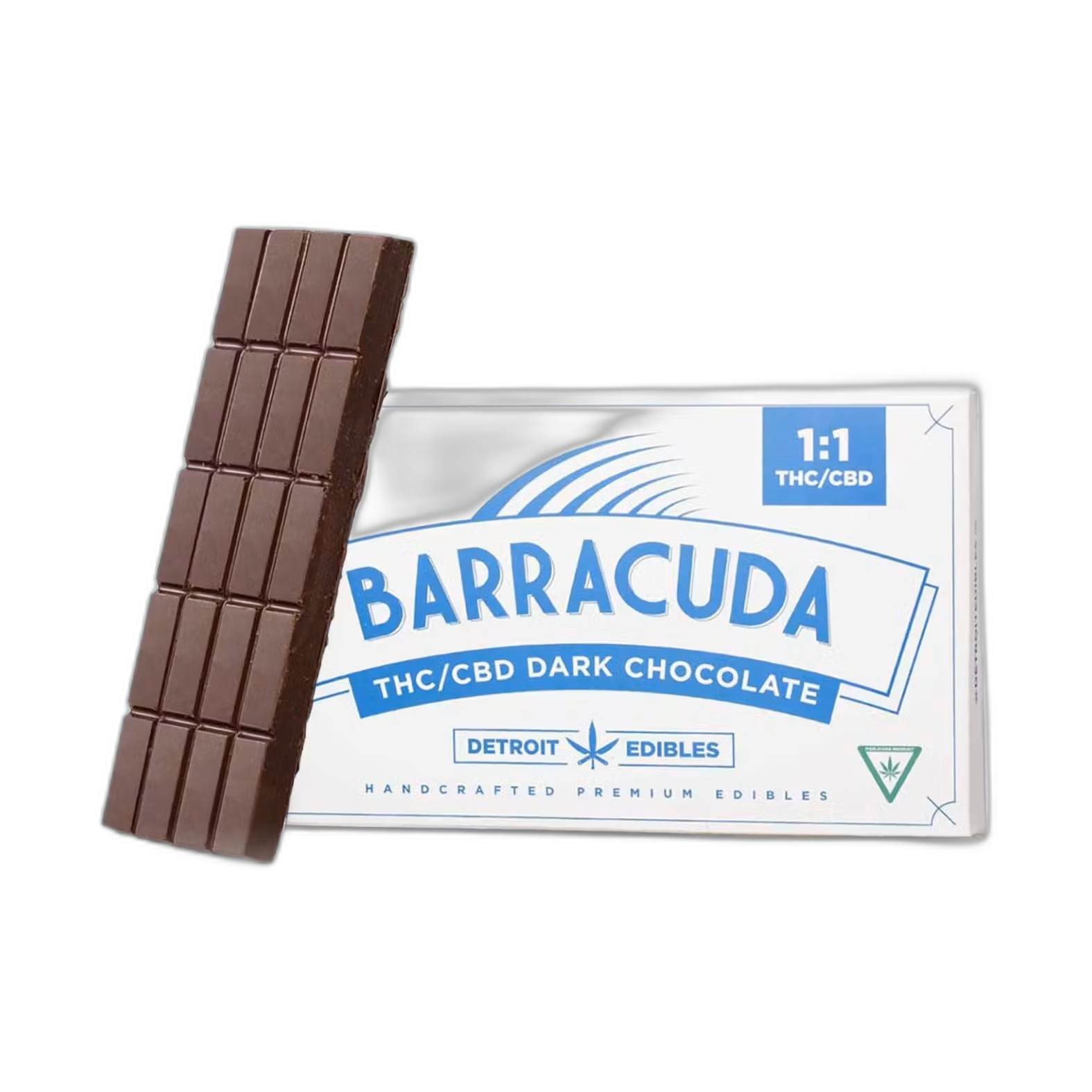 Barracuda Bars are crafted from the highest-quality ingredients. The chocolate is made of 65% Belgian chocolate combined with the purest distillate fr...[Read More] Barracuda Bars are crafted from the highest-quality ingredients. The chocolate is made of 65% Belgian chocolate combined with the purest distillate from their very own Michigan-made Cannalicious Labs for the smoothest consumption experience to date. Each bar contains 200mg THC / 200mg CBD and fully activates in 1-2 hours. [Less]