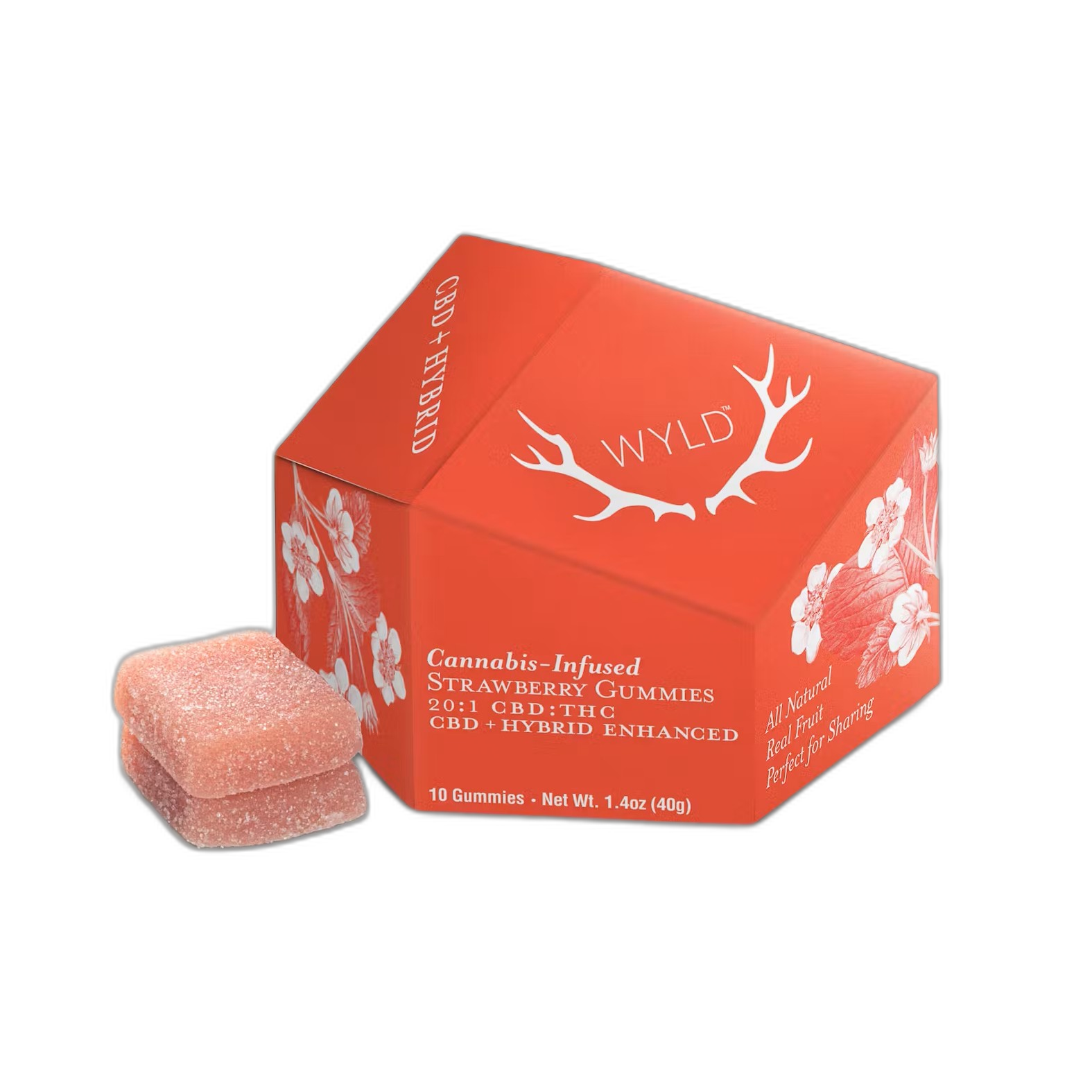 Wyld's Strawberry 20:1 CBD:THC Enhanced Gummies are made with real fruit and enhanced with cannabis-derived CBD oil. Relaxing your body while keeping...[Read More]Wyld's Strawberry 20:1 CBD:THC Enhanced Gummies are made with real fruit and enhanced with cannabis-derived CBD oil. Relaxing your body while keeping your mind sharp and alert. It is the go-to gummy if you are looking to decompress or take the edge off, but still have things to check off of your to-do list. 200mg CBD:10mg THC per pkg, 20mg CBD:1mg THC per gummy [Less]